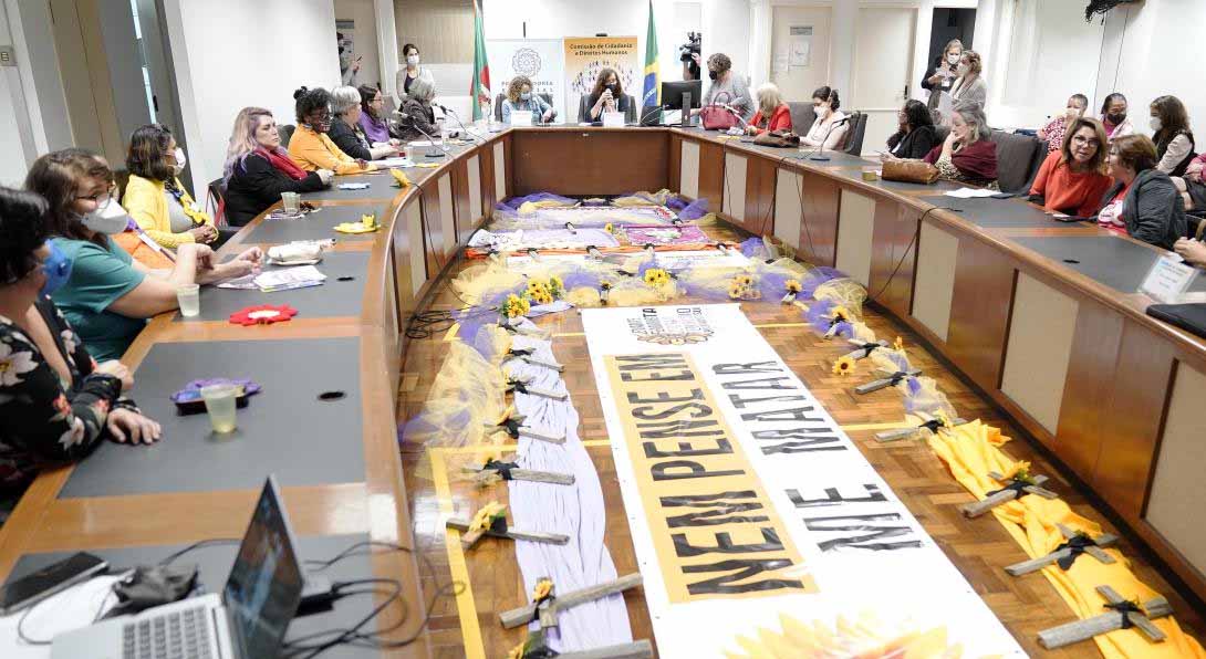A Comissão de Cidadania e Direitos Humanos recebeu em audiência pública na terça-feira (9/5) dossiê elaborado pelo Levante Feminista do RS sobre os casos de feminicídio no estado, com denúncia de paralisação da rede de proteção às mulheres e desmonte das políticas públicas para prevenção da violência doméstica e sexual. O encontro mobilizou diversos coletivos de mulheres e através de conexão com a Câmara Federal, oportunizou depoimentos de militantes feministas de outros estados da Federação que também atuam no combate à violência contra a mulher e contra o feminicídio.