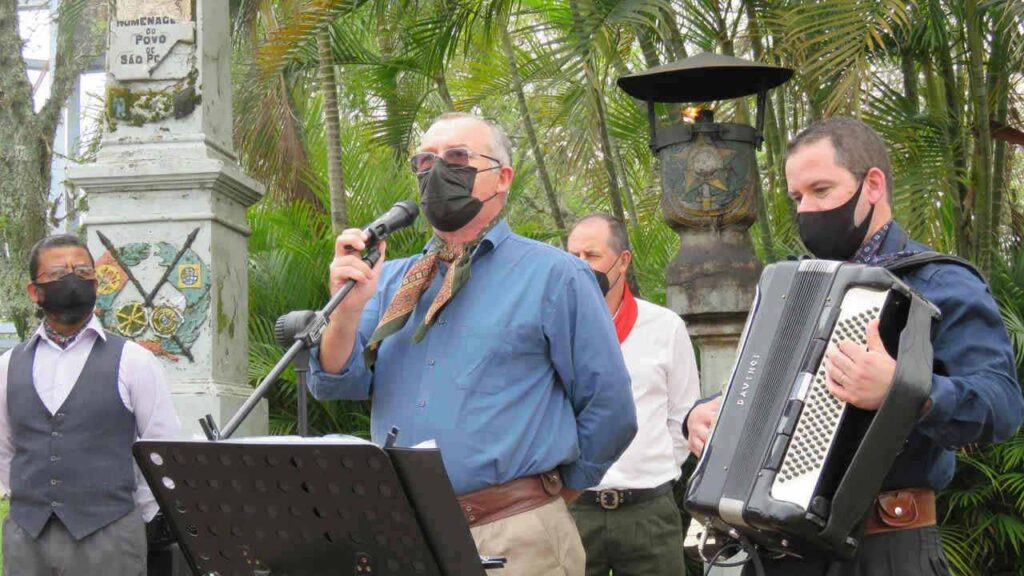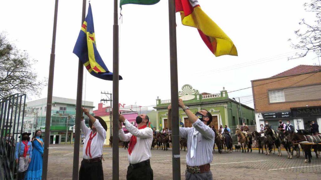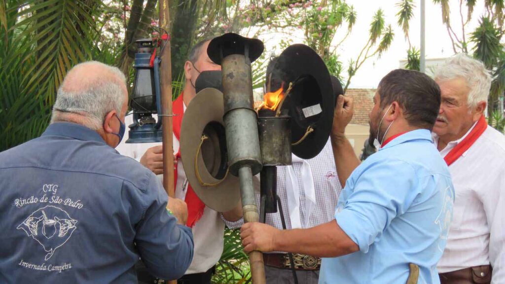 Os Festejos Farroupilhas de São Pedro do Sul foram abertos oficialmente pelo vice-prefeito Vernei Dalcul (MDB) na tarde desta segunda-feira (13/9) na Praça Crescêncio Pereira, com a chegada do candeeiro com a fagulha da Chama Crioula 2021, trazida da cidade de Santa Maria por cavalarianos do Itaquatiá CTG. A Semana Farroupilha deste ano tem como homenageado o tradicionalista José Nascimento Dutra. Veja as imagens: