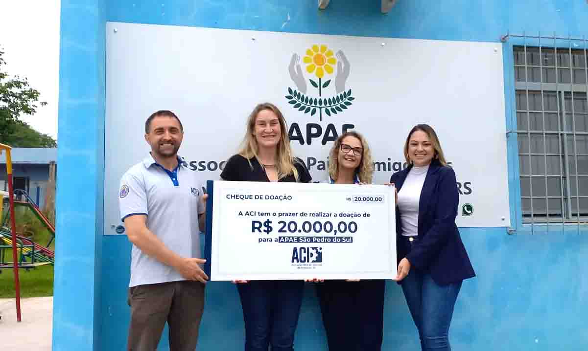 Na manhã desta quarta-feira (10), diretores da Associação Comercial e Industrial de São Pedro do Sul (ACI), estiveram na Associação de Pais e Amigos dos Excepcionais (APAE) para fazer a entrega de um cheque no valor de R$ 20 mil.