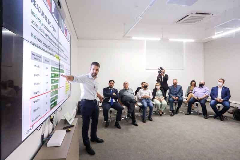 “Houve um avanço para chegarmos até aqui. A partir de agora, qualquer tipo de avanço vai colocar em risco o pagamento em dia da folha de 2023 e 2024. Sabemos que não é a situação ideal, mas é a única carreira ganhando reajuste neste ano, em todo Estado, e está ganhando essa reposição no limite em que o Estado pode dar”, destacou o presidente da Assembleia Legislativa, deputado Gabriel Souza.