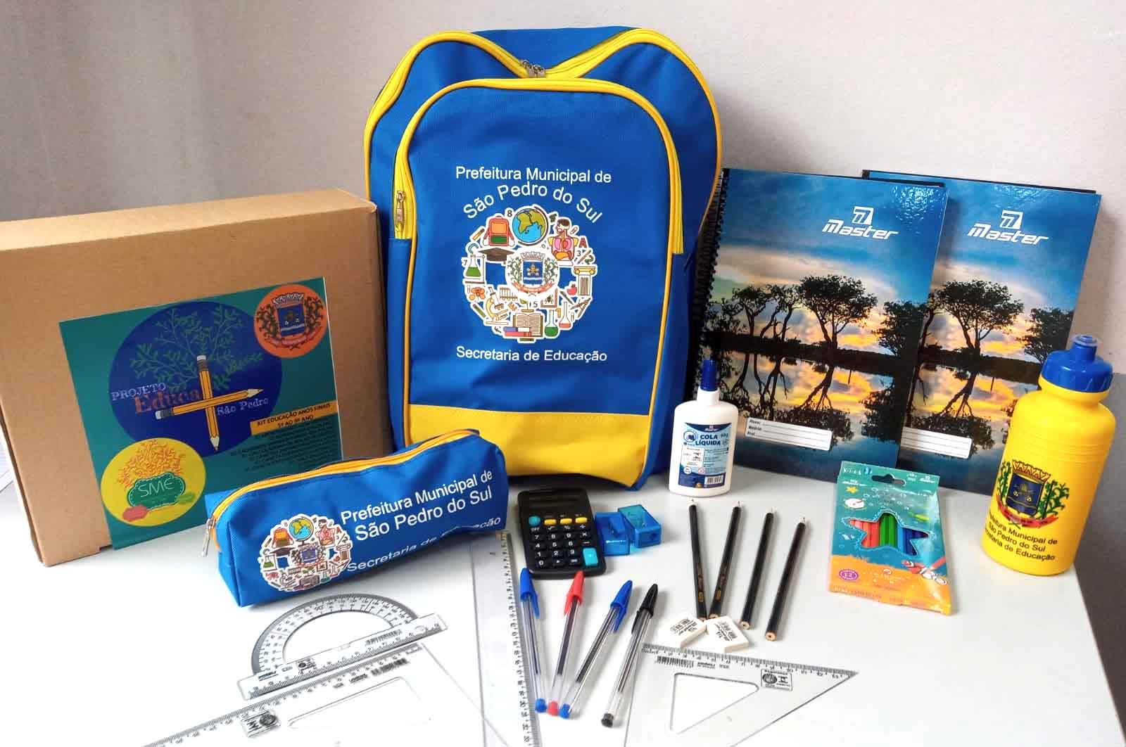 Dentro do programa “EducaMais São Pedro”, desenvolvido pelo governo do Município, neste ano letivo a Secretaria Municipal de Educação irá distribuir kits de material escolar aos cerca de 1.500 alunos matriculados nas escolas municipais (berçário, educação infantil que alcança os alunos de maternal e pré-escola, anos iniciais abrangendo alunos do 1°ao 5° ano e anos finais abrangendo alunos do 6° ao 9º ano).