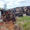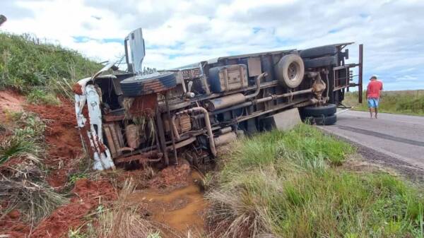 Um caminhão baú tombou sobre a faixa que liga os municípios de São Pedro do Sul e Dilermando de Aguiar no início da tarde...