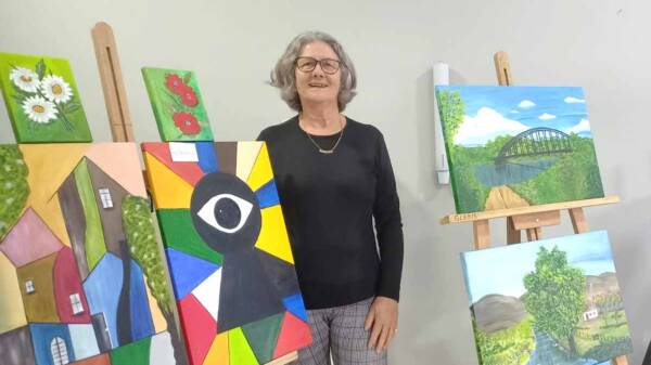 A artista plástica Vera Lucia Schmitt está expondo 24 quadros, pintados na técnica acrílico sobre tela, no hall da entrada da Associação Comercial e Industrial de...
