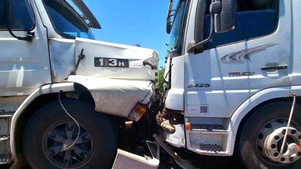 Por volta das 11h30 desta sexta-feira (18), uma carreta Scania 113 e um caminhão bitruk Mercedes Benz colidiram sobre a ponte do rio Toropi...
