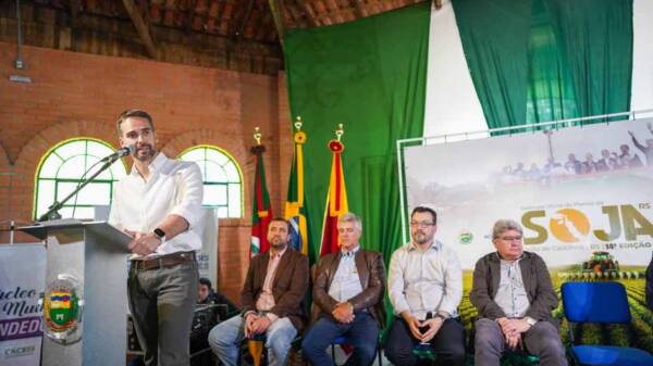 O governador Eduardo Leite participou, nesta sexta-feira (4/10), da 14ª Abertura Oficial do Plantio da Soja no Rio Grande do Sul, no município de...