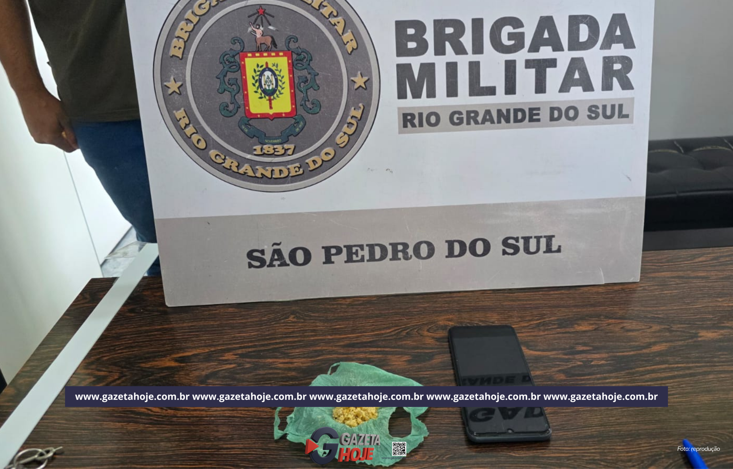 Durante a abordagem, os policiais encontraram com ele um aparelho celular e uma pequena porção de material ilícito.