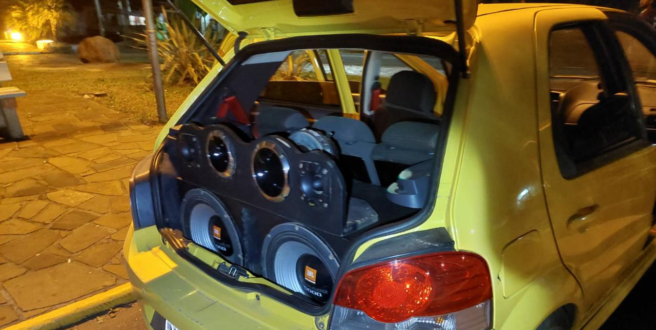De acordo com o registro policial, após ligações anônimas para a BM, os policiais foram até a Rua Nossa Senhora dos Remédios, onde um veículo estava com a tampa do porta malas aberta e com o som ligado em alto volume.