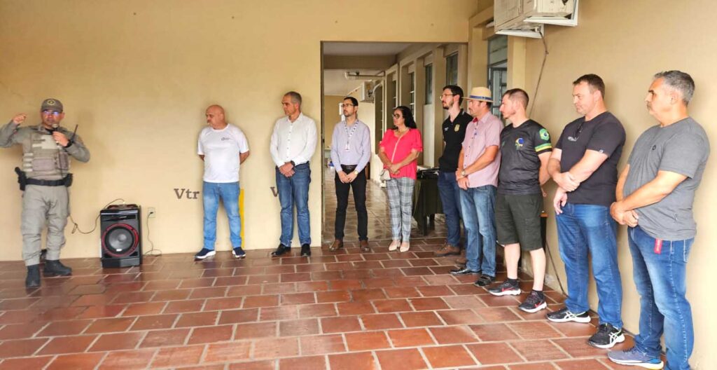 O ato contou com a presença do Subcomandante do 1º RPMon, Major Antônio Marcos Silveira Moreira, do prefeito Fernando Cezar, do presidente da Câmara de Vereadores, ver. Eduardo Serdotti, do delegado Giovanni Lovato, do presidente da Frente Parlamentar de Segurança, ver. Kiko Panciera, do coordenador do Movimento São Pedro mais Seguro, ver. Kinha, do presidente do Consepro, Carlos Augusto Robaina Jornada, vereadores e de demais autoridades civis e militares.