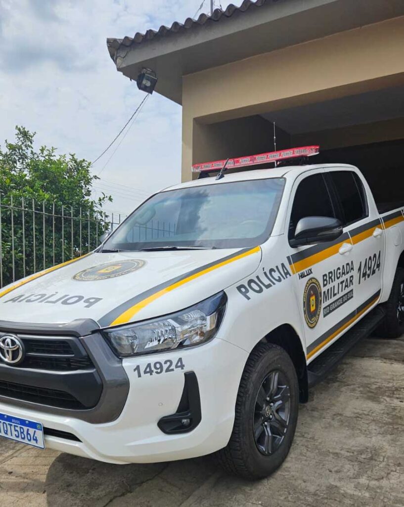 Na tarde da quarta-feira (12), a Brigada Militar, por meio do 1º Regimento de Polícia Montada (1º RPMon), realizou a solenidade de entrega de uma nova viatura Toyota Hilux 2025, de prefixo 14924.