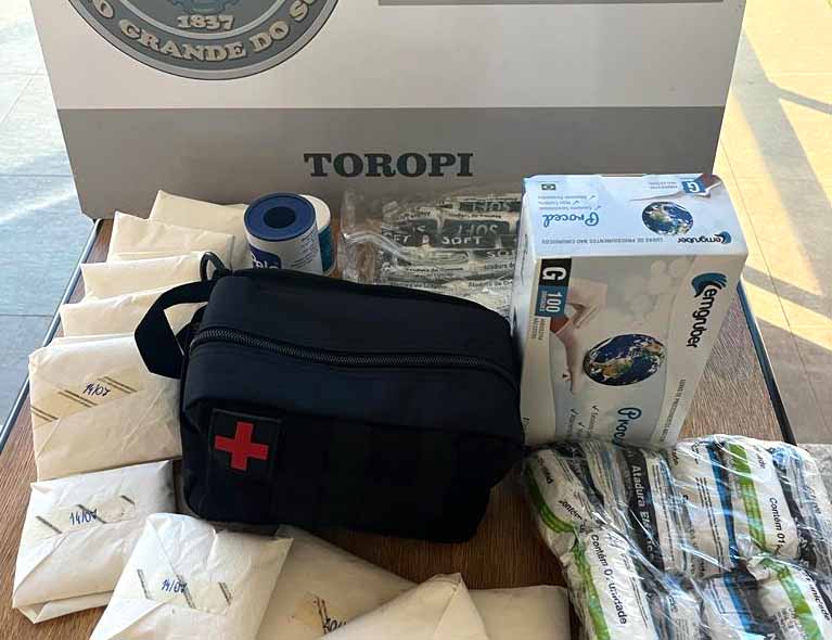 A Brigada Militar de Toropi recebeu via Conselho Comunitário Pró-Segurança Pública (CONSEPRO) e Secretaria Municipal de Saúde, um kit completo de primeiros socorros ( atendimento pré-hospitalar ) visando um melhor atendimento da guarnição junto a comunidade.