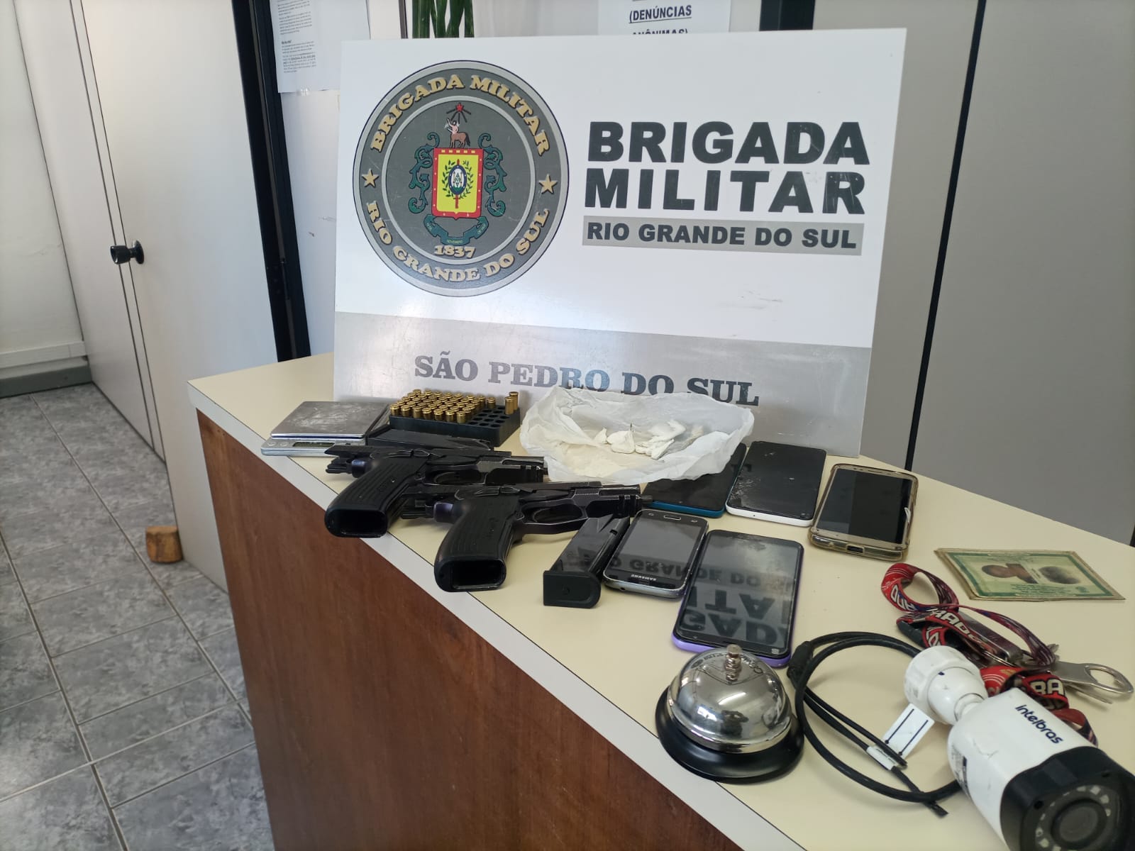 No mesmo momento, os policiais visualizaram em um sofá uma pistola. Uma mulher de 23 anos, informou que era responsável pela casa e que era de São Sepé e estava na cidade a três semanas.