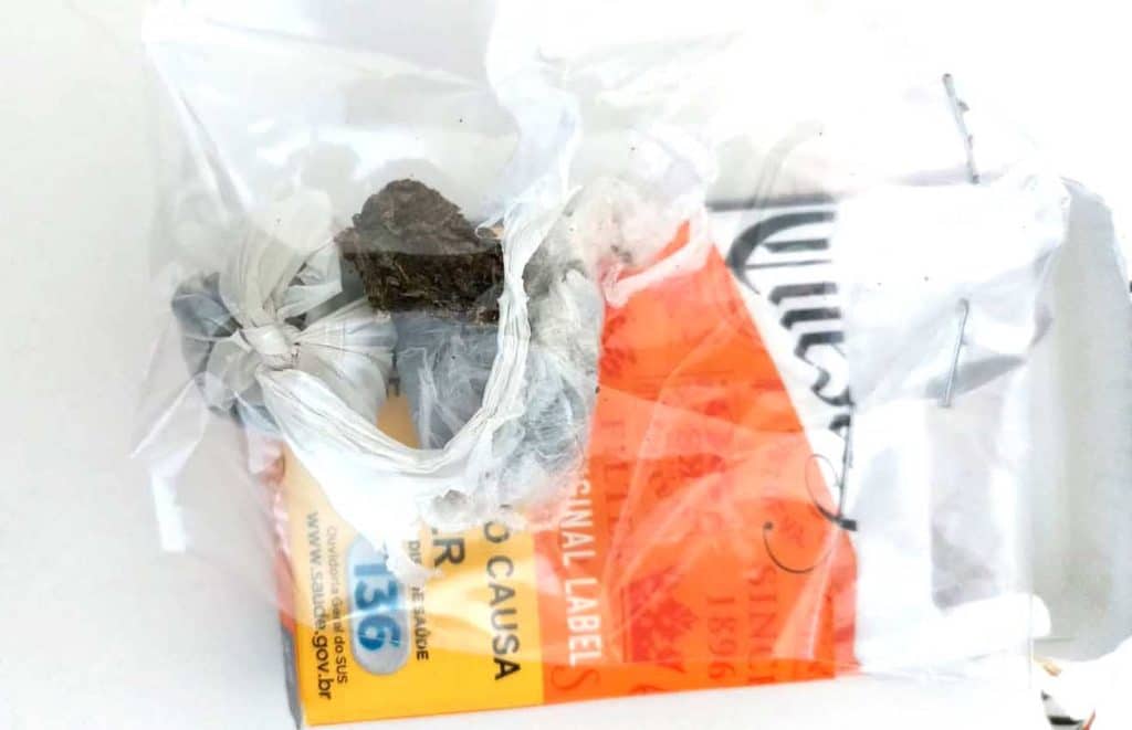 Junto com a droga, foi encontrado material para a preparação do "cigarro". Foto: BM