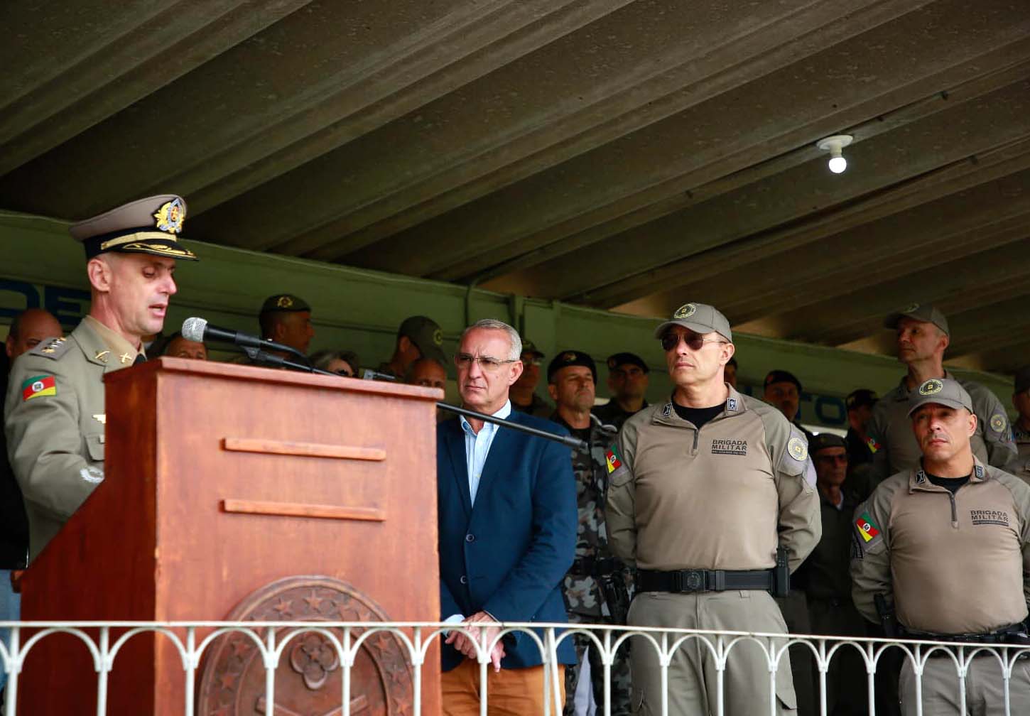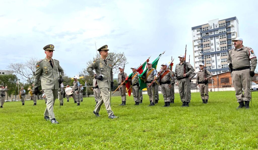 A Brigada Militar realizou a passagem de comando do 1º Regimento de Polícia Montada (1º RPMon), o Regimento “Cel Pillar”, quando o Major Rogério Glanzel Alves entregou o comando do 1º RPMon ao Tenente Coronel Marcus Giovani Mello da Silva. A solenidade ocorreu às 14hs, da quarta-feira (18) no Estádio da Guarnição da Brigada Militar.