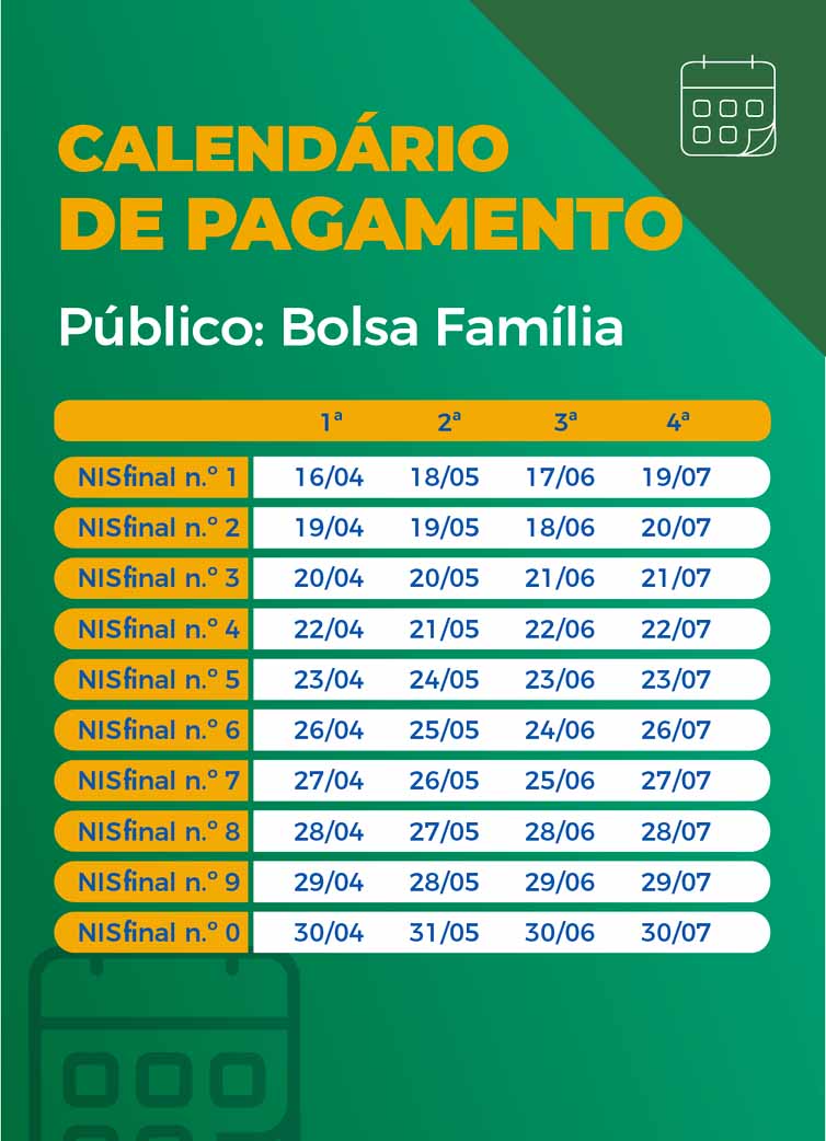 Também hoje, beneficiários do Bolsa Família com o Número de Inscrição Social (NIS) de dígito final 4 poderão sacar o benefício.