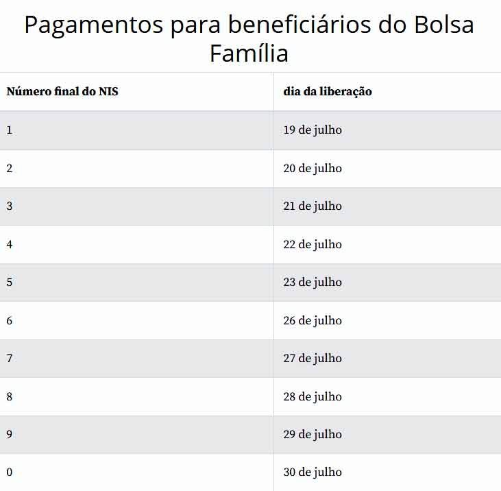 Para os beneficiários do Bolsa Família, o pagamento ocorre de forma distinta. Os inscritos podem sacar diretamente o dinheiro nos dez últimos dias úteis de cada mês, com base no dígito final do NIS.