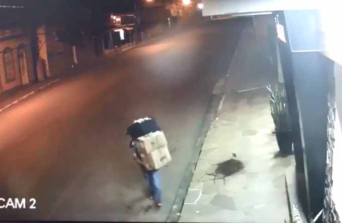 A ação dos ladrões foi flagrada por câmeras de videomonitoramento de empresas que ficam no entorno da loja arrombada. Um dos vídeos mostra dois ladrões carregando as mercadorias em caixas e em um saco. Usando máscaras de proteção facial e mostrando-se atrapalhados, eles chegam a derrubar o saco com o vestuário e voltam para buscar o material roubado (veja abaixo). As imagens foram solicitadas pela Polícia Civil, que trabalha para identificar os larápios.