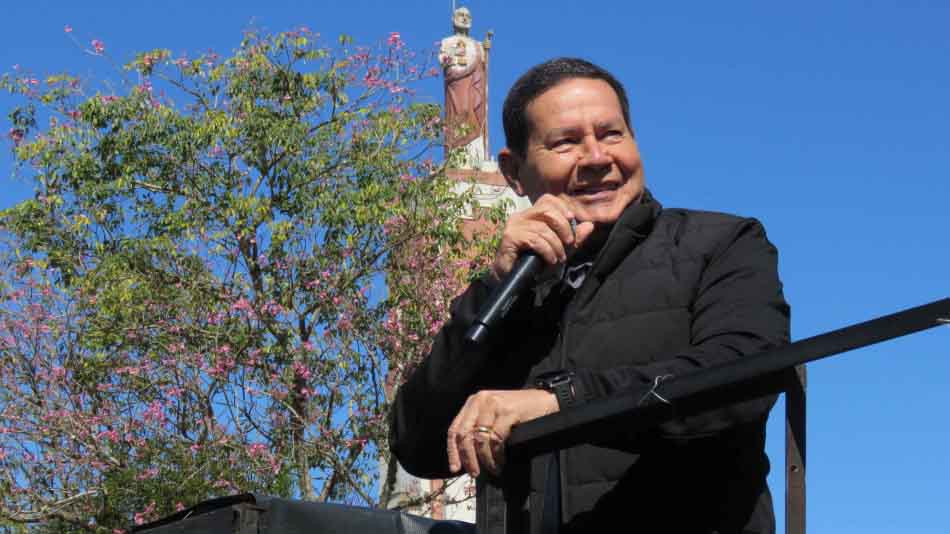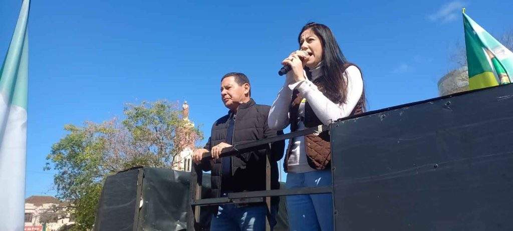 O candidato a senador, o vice-presidente da República Hamilton Mourão (Republicanos) esteve em campanha em São Pedro do Sul neste sábado, dia 10. O político chegou por volta das 10h20 acompanhado da são-pedrense e deputada federal Liziane Bayer (Republicanos), 1ª suplente do candidato.