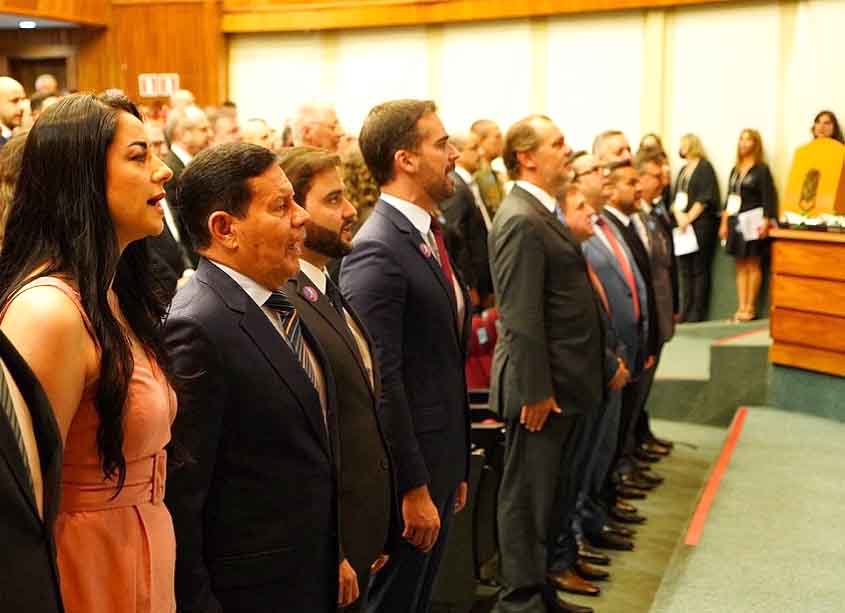 A cerimônia de Diplomação dos Eleitos 2022 ocorreu nesta segunda-feira (19), no auditório do Ministério Público do Rio Grande do Sul, em Porto Alegre. Na ocasião, o governador eleito Eduardo Leite, o vice-governador Gabriel Souza, o senador Hamilton Mourão, a primeira suplente de senador, Liziane Bayer, o segundo suplente de senador, Coronel Mário Adreuzza, os 31 deputados federais e os 55 estaduais receberam seus diplomas.