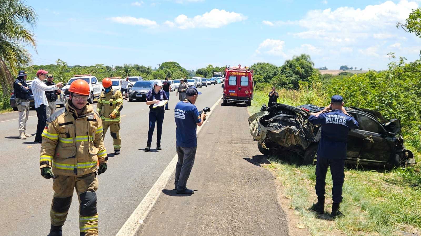 O Instituto-Geral de Perícias (IGP) encontrou vestígios do acidente espalhados pelo acostamento, como o para-choque e itens pessoais, incluindo mochila e travesseiros. A PRF montou uma operação para retirada do veículo com os corpos. A identidade das vítimas ainda não foi divulgada.