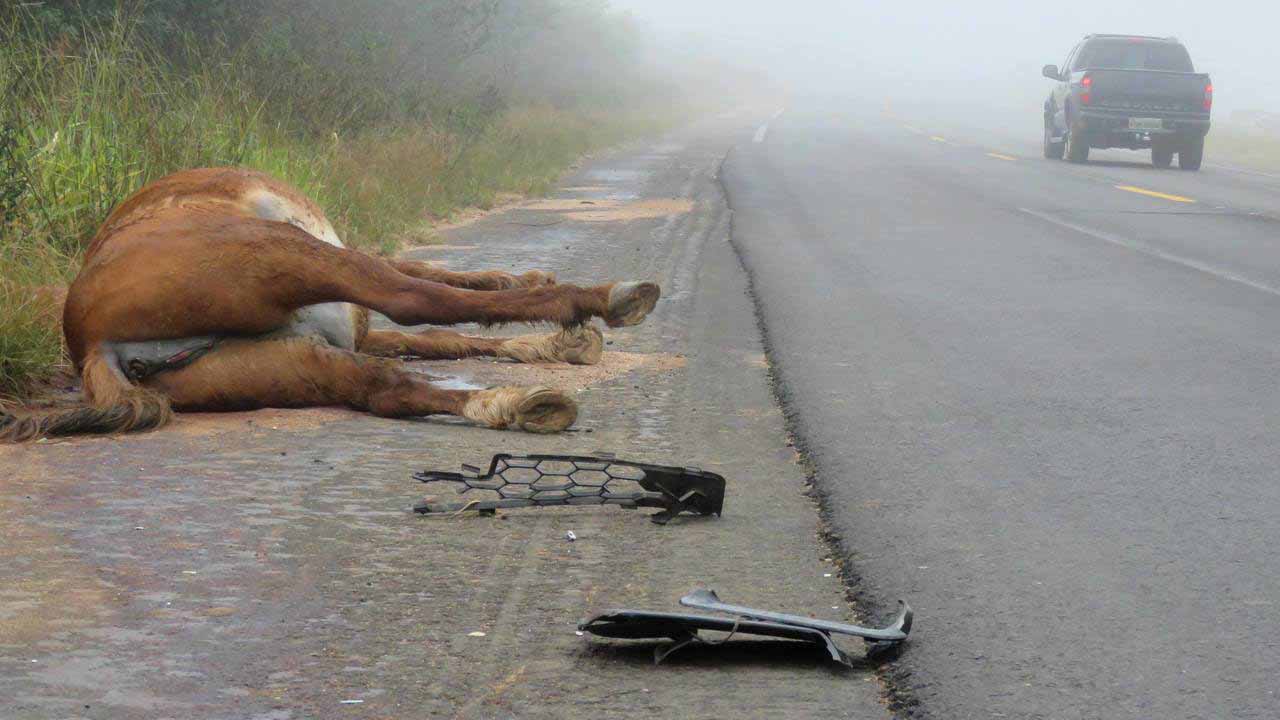 Até a manhã desta segunda-feira, o animal ainda não havia sido retirado do local do acidente.