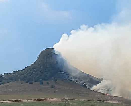 Este cenário não é diferente no pampa gaúcho. Na tarde deste domingo, dia 23 de janeiro, por volta das 16h, um dos cartões postais do município de São Pedro do Sul, foi tomado pelas chamas.