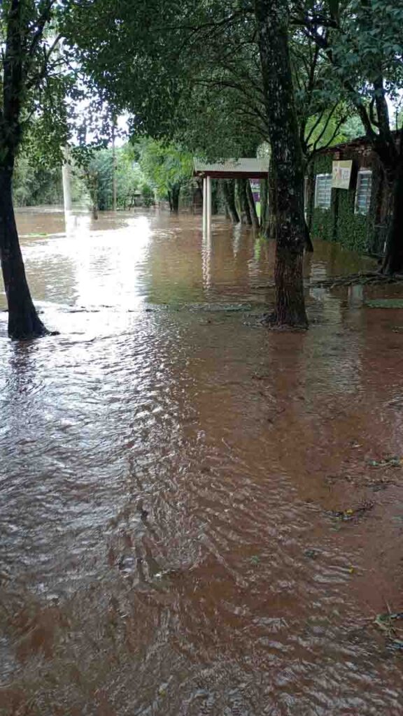 O mesmo aconteceu no Balneário Passo do Angico em Toropi. Muitas lavouras, principalmente de arroz e soja nas áreas mais baixas estão debaixo d`água, trazendo prejuízos na colheita.