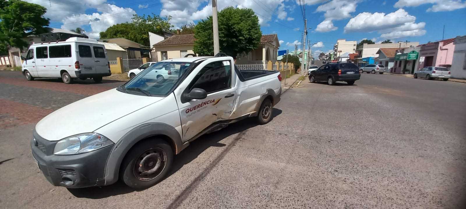 Um acidente de trânsito foi registrado no inicio da tarde desta segunda-feira (13) na região central de São Pedro do Sul. O motorista de um veículo Fiat Strada trafegava pela rua Gerônimo Gomes, sentido bairro/centro, quando ao entrar na rua Expedicionário Almeida acabou cortando a frente de uma caminhonete Fiat Palio que trafegava pela preferencial sentido bairro/centro, ocasionando a colisão. Ninguém se feriu.