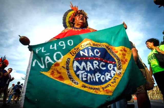 A tese do marco temporal prevê que os povos indígenas só terão direito à demarcação de terras que já eram tradicionalmente ocupadas por eles no dia da promulgação da Constituição Federal, em 5 de outubro de 1988.