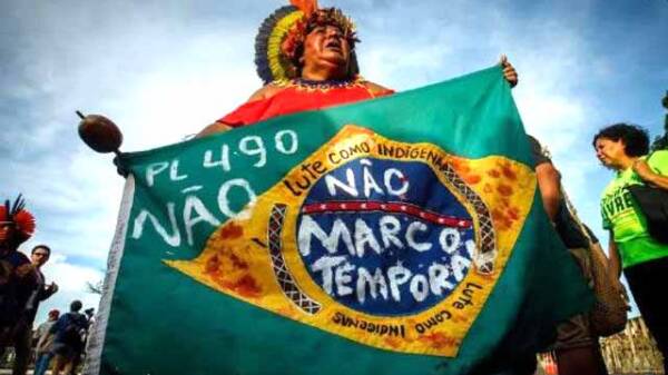 Saiba Mais: O marco temporal é uma tese jurídica que defende uma alteração na política de demarcação de terras indígenas no Brasil. Segundo essa tese, só poderia reivindicar direito sobre uma terra o povo indígena que já estivesse ocupando-a no momento da promulgação da Constituição Federal, em 5 de outubro de 1988.