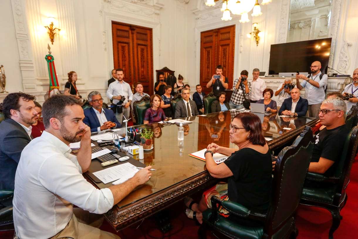 Na tarde da segunda-feira (6), o CPERS reuniu-se com Eduardo Leite (PSDB) e representantes do alto escalão do governo, no Palácio Piratini, em Porto Alegre, em um primeiro encontro para debater o reajuste de 14,95% do Piso Nacional do Magistério.
