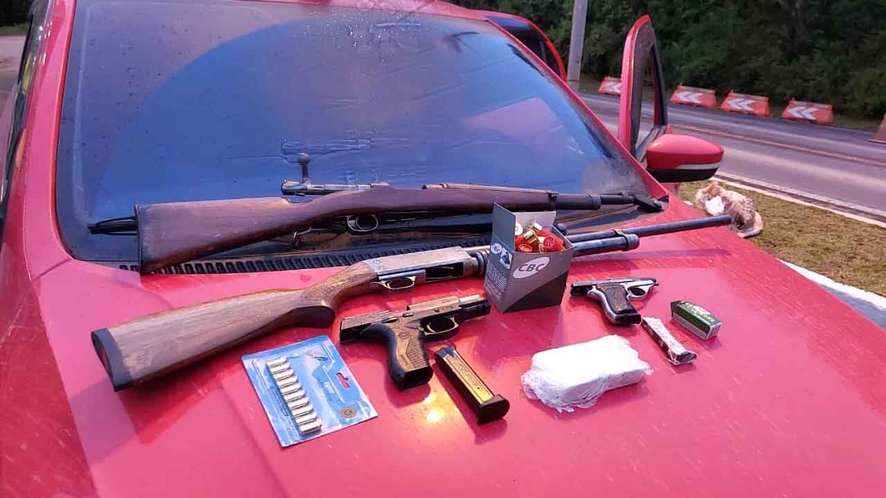 Na ação os policiais abordaram um Voyage que vinha de Júlio de Castilhos com destino a Jaguari. Dentro do veículo havia quatro homens portando armas e munições. Ao total, o grupo carregava duas pistolas, uma espingarda e um fuzil calibre 7,62mm. Além disso, os suspeitos portavam várias caixas de munições com calibres variados, incluindo munições de 7.62mm.