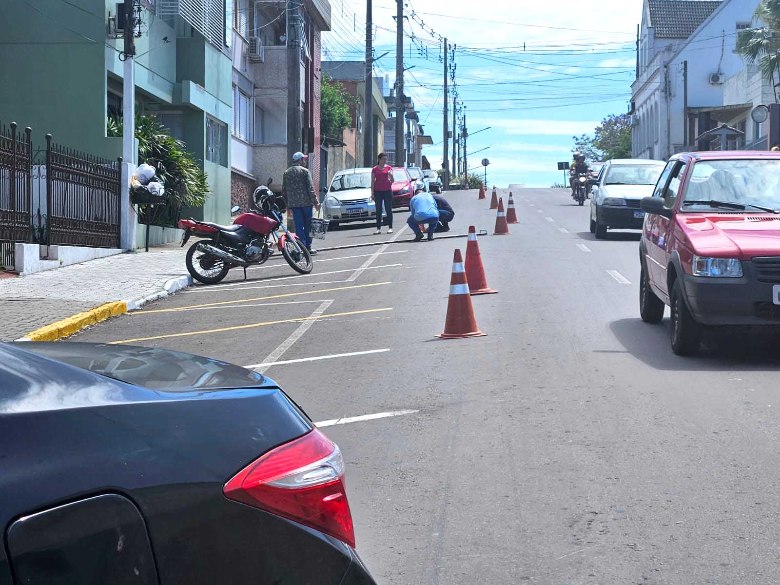 Na manhã desta segunda-feira (3), o Departamento de Trânsito da prefeitura de São Pedro do Sul, iniciou a pintura para a implantação de estacionamento oblíquo na Rua Silva Jardim, trecho entre as ruas Sete de Setembro e Borges de Medeiros.