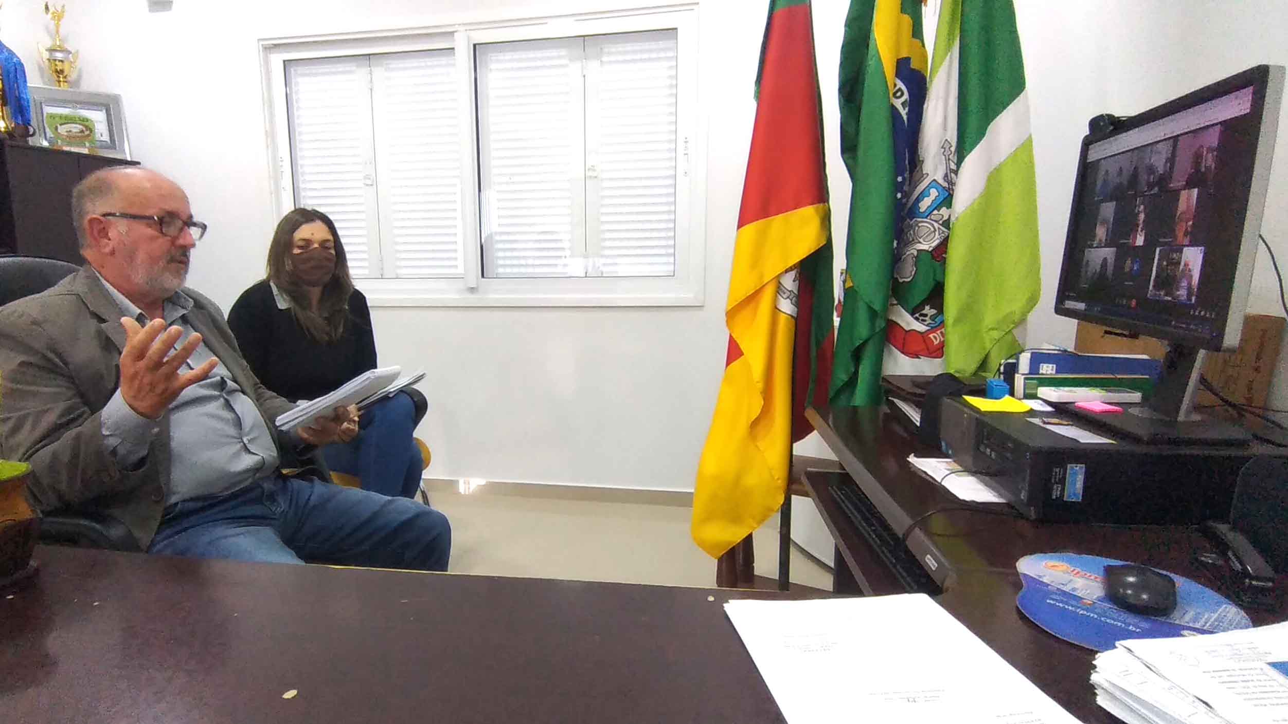 O prefeito Claiton Ilha (MDB) em reunião virtual na terça-feira (5/10), apresentou aos servidores da Secretaria Municipal de Saúde, a nova secretária interina da pasta, Luciane Trindade, que atualmente atua como Chefe de Gabinete.