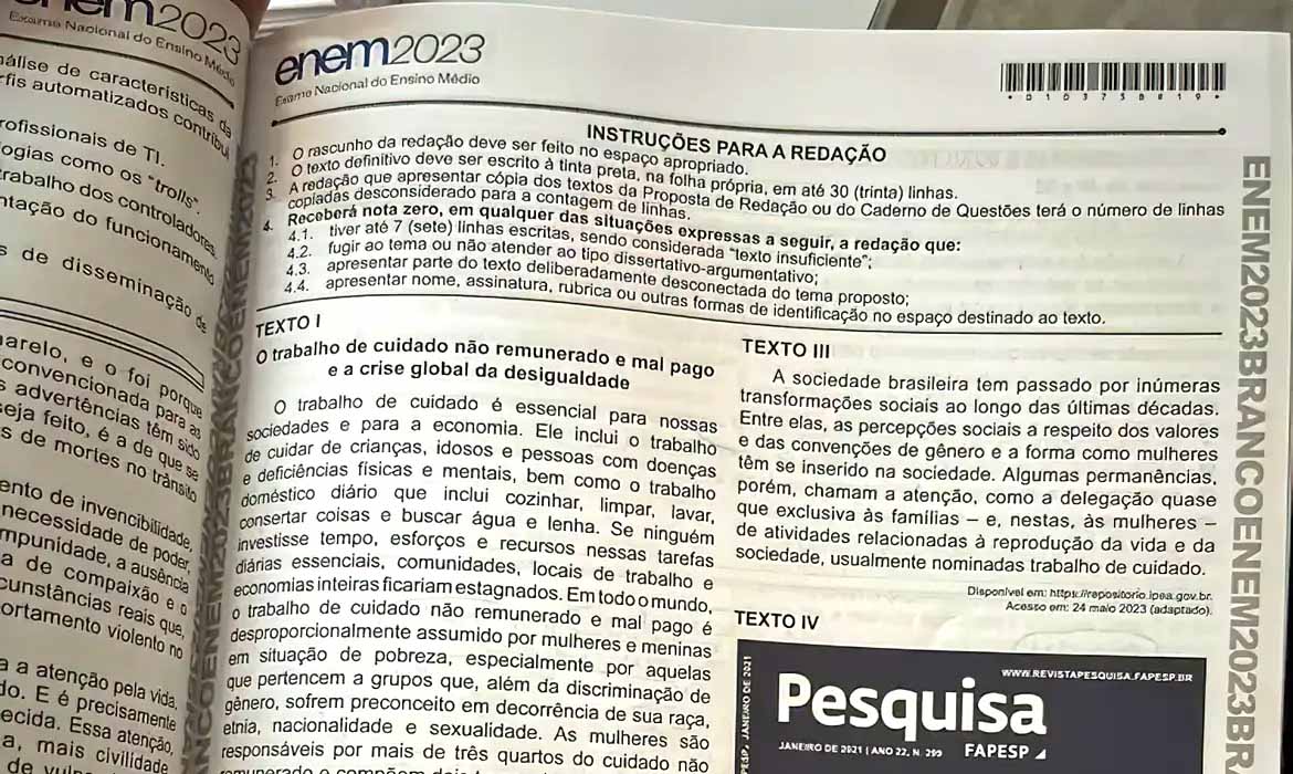 No dia 3 de novembro, primeiro dia do exame, os participantes deverão escrever um texto dissertativo-argumentativo de até 30 linhas. Será proposta uma situação-problema, que servirá de base para o desenvolvimento da redação.
