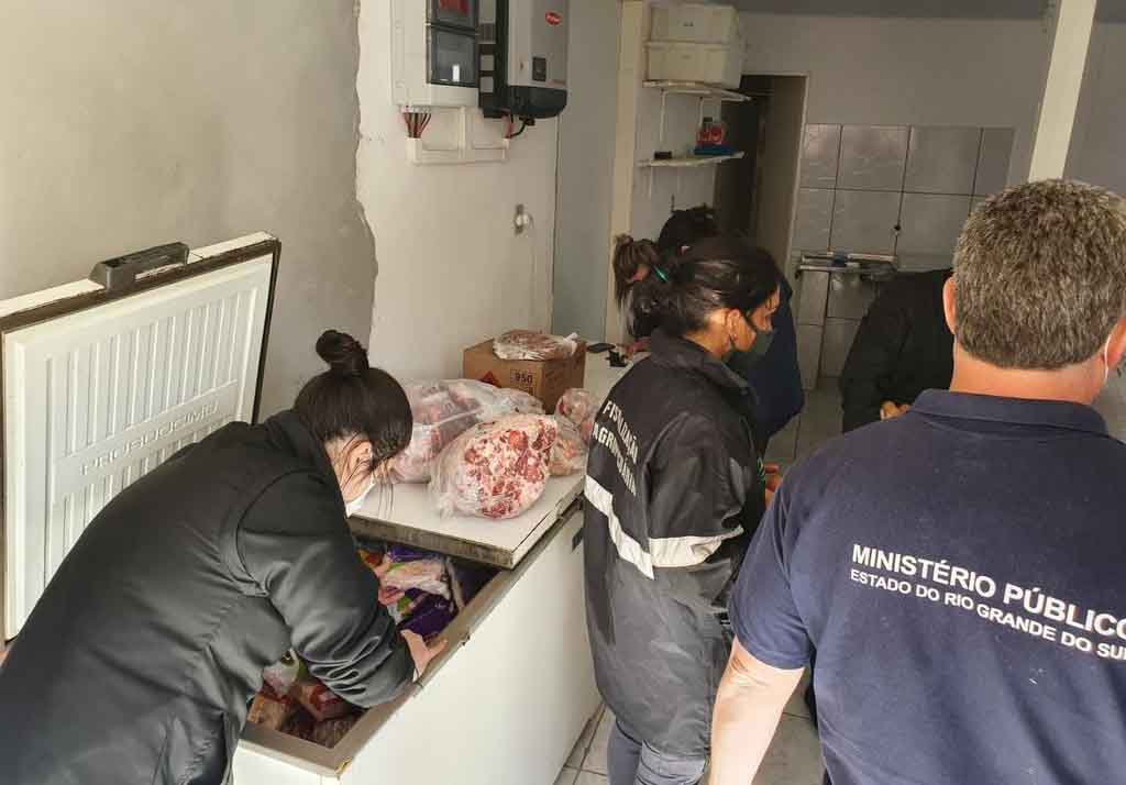 A fiscalização contou com a participação de servidores do Gaeco – Segurança Alimentar e representantes da Vigilância Sanitária Municipal de Cacequi, das Secretarias de Estado de Agricultura e de Saúde, da Delegacia de Polícia de Proteção ao Consumidor e da Patrulha Ambiental da Brigada Militar. Fonte: Ministério Público.