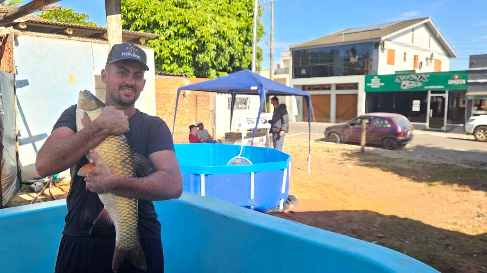 Junto a Feira do Produtor, em diagonal com a Praça Crescêncio Pereira está funcionando a comercialização de filé de Tilápia e peixes congelados.