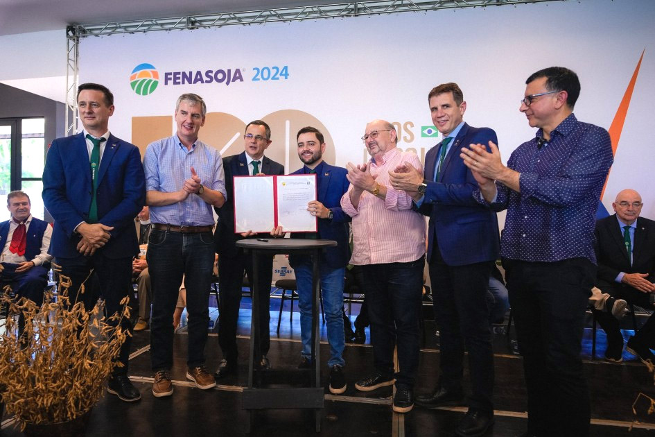 Em clima de festa e comemoração, foi aberta oficialmente no sábado (30/11) a 24ª Feira Nacional da Soja (Fenasoja), realizada em Santa Rosa. O evento contou com a presença do vice-governador Gabriel Souza, secretários de Estado e de autoridades. Neste ano, a Fenasoja celebra os 100 anos do plantio comercial do grão no Brasil, que teve início no município de Santa de Rosa, conhecido como o berço nacional da soja, pela Lei Federal 14.349/2022. A feira é considerada o maior evento multissetorial do país, fomentando negócios, relacionamentos, conhecimentos e inovação. Traz uma vasta programação e ocorre até 8 de dezembro.