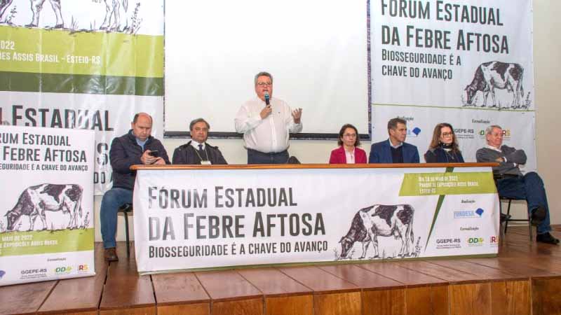 O 3º Fórum Estadual da Febre Aftosa ocorreu na tarde de ontem (18/5) em formato híbrido, presencial e on-line, no Parque de Exposições Assis Brasil, em Esteio, durante o primeiro dia da Fenasul Expoleite. O evento teve como tema “a biosseguridade como chave do avanço”.