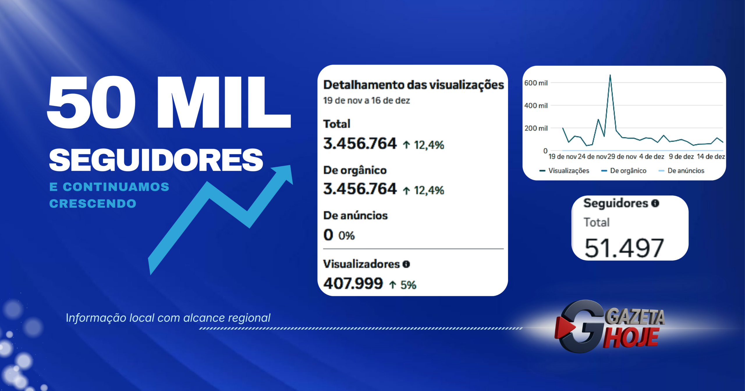 Os números refletem esse crescimento: no último período de 19 de novembro à 16 de dezembro, a página Gazeta Hoje registrou mais de 3,4 milhões de visualizações demonstrando o engajamento do público com o conteúdo publicado diariamente.