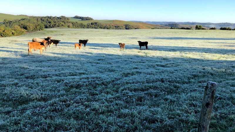 No sistema de criação de gado de corte, baseado apenas no campo nativo, o quadro de perda de estado corporal dos animais se acentuou devido à sequência de geadas e ao insuficiente forrageiro disponível. Assim como o gado, os ovinos mantidos em pastagens cultivadas de inverno apresentam bom estado corporal, mas os rebanhos mantidos em campo nativo sofrem com a estagnação no crescimento das plantas queimadas pela geada e com altura reduzida, dificultando o pastejo até mesmo para os ovinos.