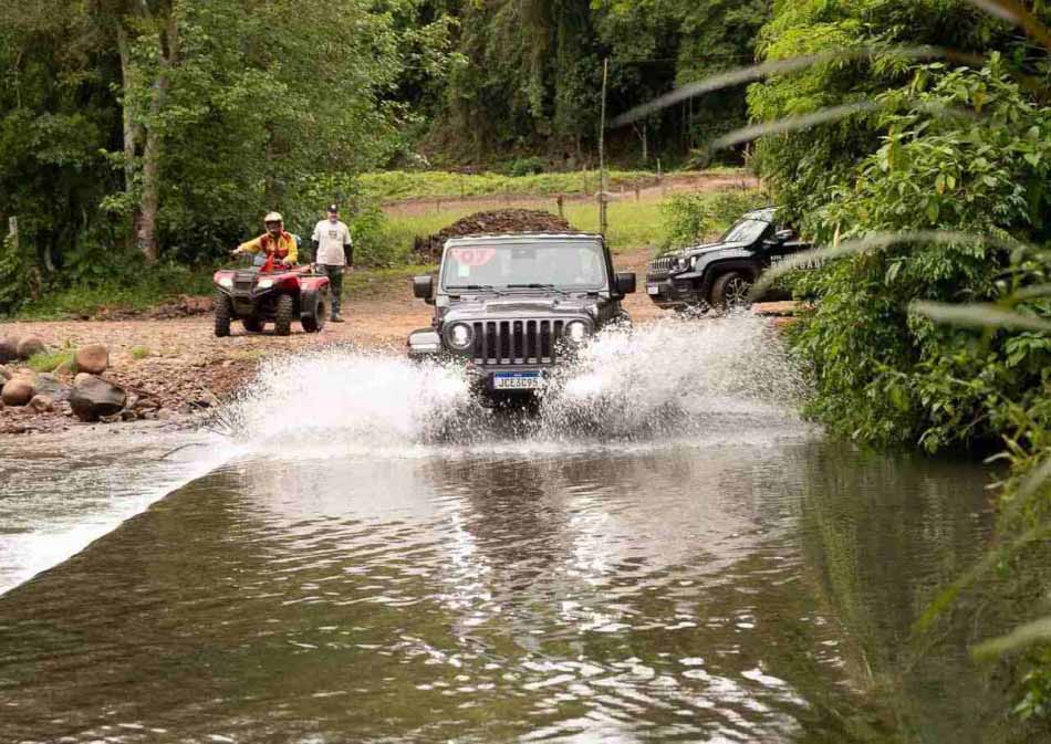Mais de 50 carros e cerca de 180 pessoas foram guiados pelo grupo de trilheiros “Caminhos de Ivorá”, em um percurso saindo pelas estradas do Recanto Maestro, passando por lugares incríveis como o Mirante São Michelin, a Gruta do Sítio Alto e o Jardim das Esculturas na região de Ivorá. Além das paisagens, os jeepeiros puderam apreciar uma programação planejada nos mínimos detalhes do início ao fim, com credenciamento no Hotel Recanto Maestro, brindes personalizados durante todo o dia e um almoço típico italiano organizado pela comunidade de Ivorá.