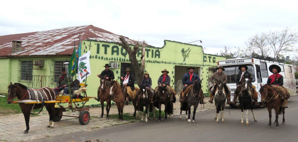 Acompanhado de 12 cavaleiros, o Patrão do Itaquatiá CTG Lucas Lima, partiu no inicio da tarde desta sexta-feira (10/9), em direção ao DT Querência da Medianeira em Santa Maria para buscar uma centelha da Chama Crioula que está sendo distribuída para as 82 entidades tradicionalistas ligadas à 13ª Região Tradicionalista. A tradição da distribuição da chama crioula voltou a acontecer após um ano de intervalo devido às restrições impostas pela Covid-19.