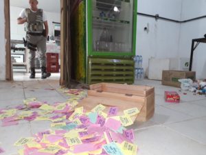 No início da manhã desta sábado, um dos membros da patronagem do Itaquatiá CTG que transitava nas proximidades, observou que havia uma porta arrombada no Centro de Tradições Gaúchas. A Brigada Militar foi acionada, quando foi constatado que foram roubadas várias garrafas de cerveja, além de revirarem o local.