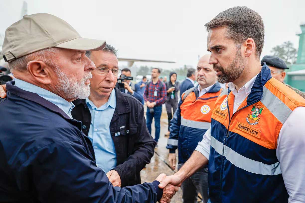 Lula e uma comitiva de ministros desembarcaram hoje em Santa Maria (RS) para reunião de trabalho com o governador do estado, Eduardo Leite, que classificou a situação como o pior desastre climático da história do Rio Grande do Sul.