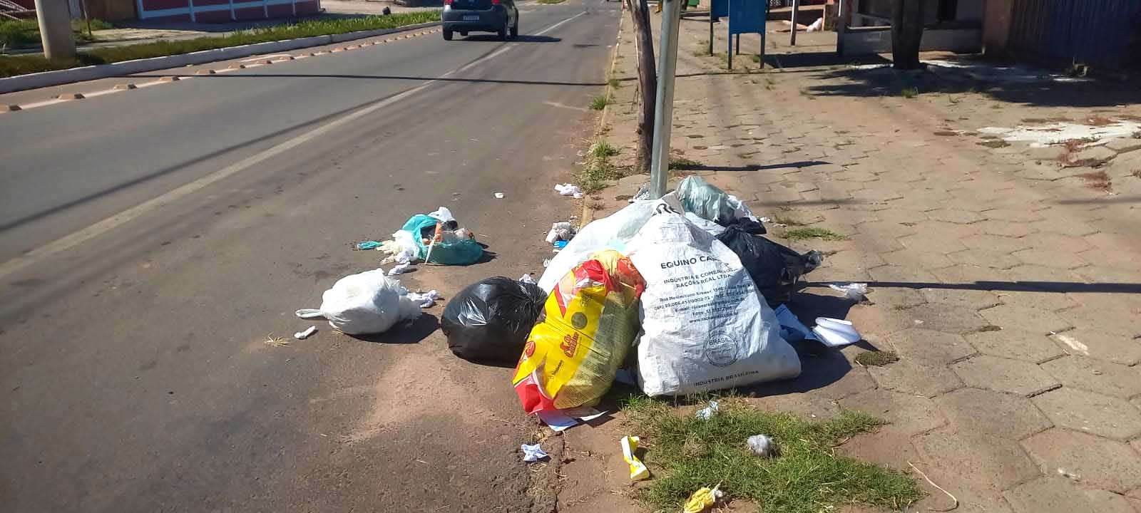 Nos últimos dias, moradores vem reclamando, principalmente nas redes sociais, da deficiência da coleta de lixo na cidade. O material descartado acumulou em portas e calçadas de casas, onde acabaram sendo revirados e espalhados por animais, trazendo transtornos a população.