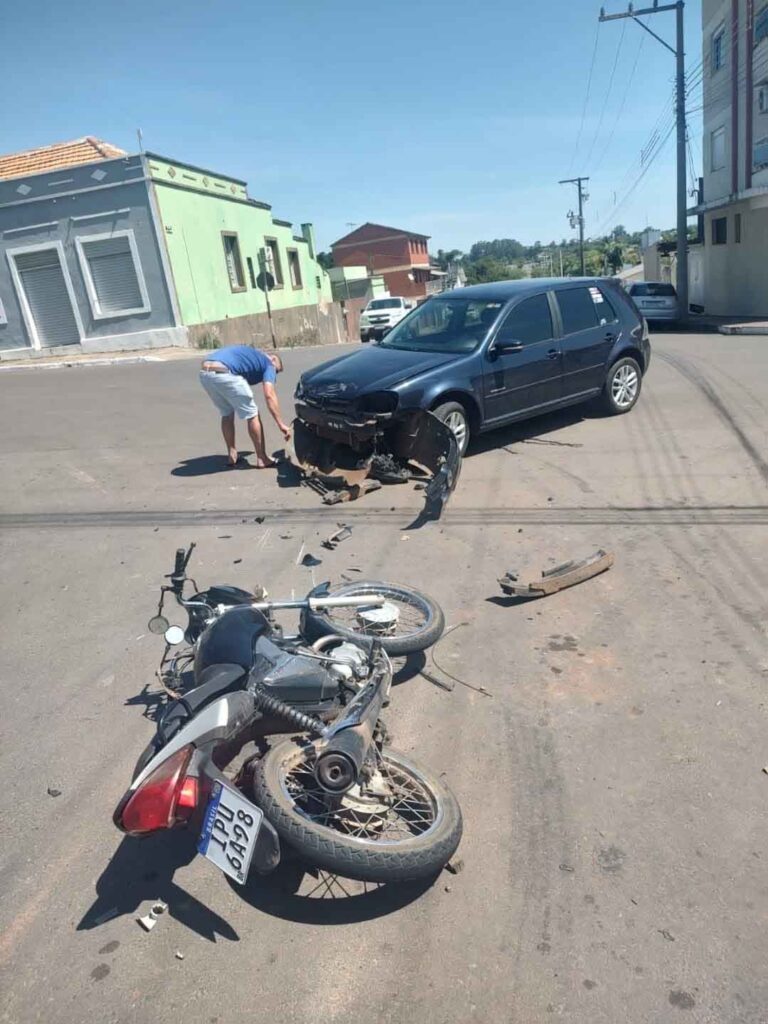 Uma colisão envolvendo uma motocicleta Honda Titan 150 e um veículo Volkswagem Golf foi registrado por volta das 14h desta quarta-feira (15) no centro da cidade.