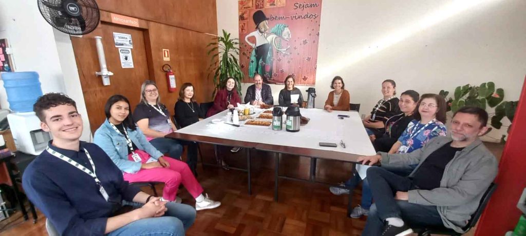 Na manhã desta quinta-feira, a prefeita Ziania Bolzan, acompanhada do vice-prefeito Vernei Delcul, a secretária de Administração Rubia Aita Xavier e a diretora de Cultura, Mariana Binato de Souza, participaram de um café de confraternização na biblioteca. Foto: Jefferson Lenz / Gazeta Hoje