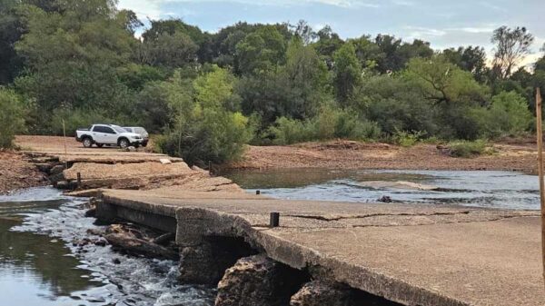 A prefeita Ziania Bolzan (PL) e o prefeito de Dilermando de Aguiar, Claiton Ilha (MDB), ao lado do secretário de Planejamento de São Pedro, Bruno Becker, anunciaram nesta segunda-feira (10), após reunião no Daer, o início da construção de um desvio (Passagem Molhada) ao lado da ponte na ERS-530, que liga os dois municípios na região central do Estado.