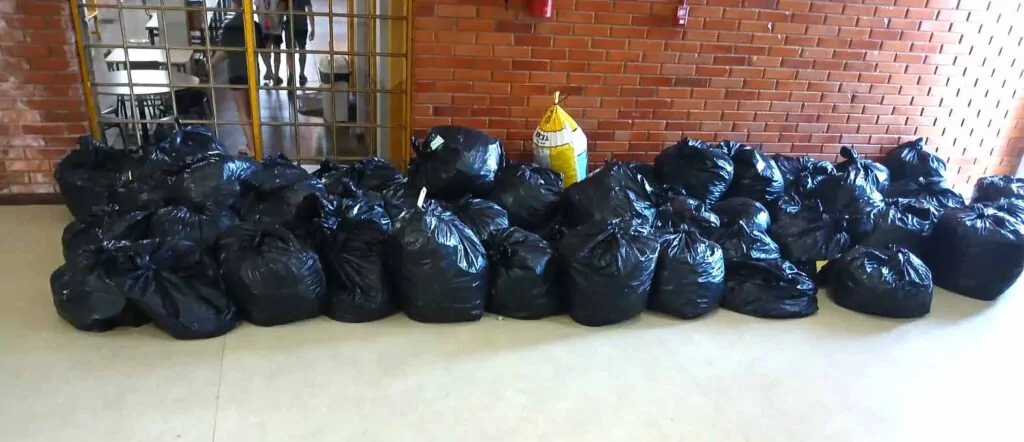 Durante a gincana, houve grande mobilização da comunidade escolar, envolvendo alunos, professores e familiares na arrecadação de lacres de latas, tampas plásticas e blisters. Ao final da campanha, foram coletados 348 quilos de materiais recicláveis.