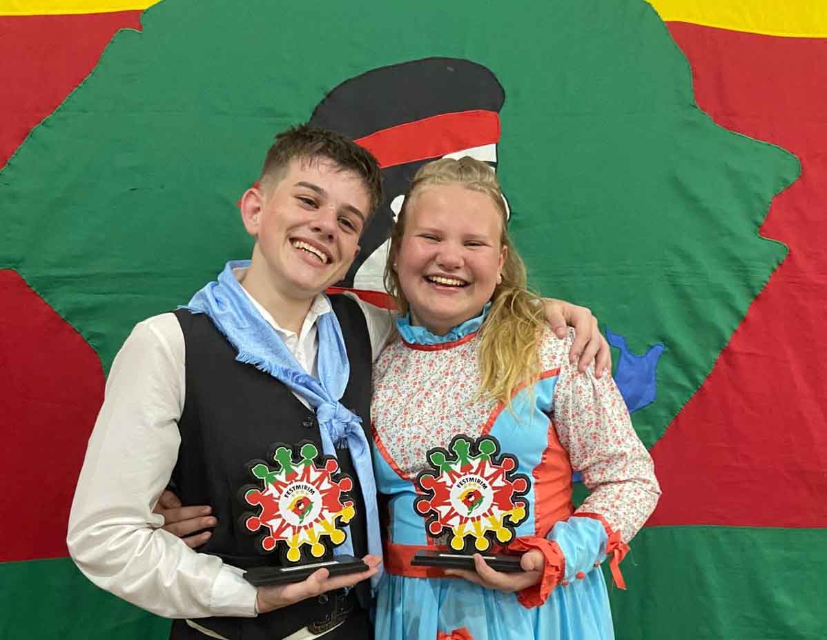 O par de Danças Gaúchas de Salão, Giovana Eich Friess e Henrique Bagolin Eich, do CTG Rincão de São Pedro, irá representar a 13ªRT e o município de São Pedro do Sul no FENART 2025.